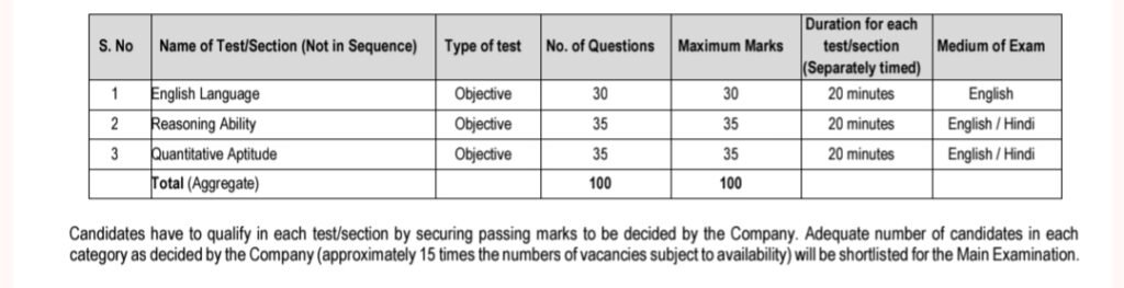 Each candidate will be required to obtain a minimum total score. (to be decided by the Company according to number of vacancies) in the objective test (Main Examination). And qualify in the descriptive test for short listing for the Interview.
