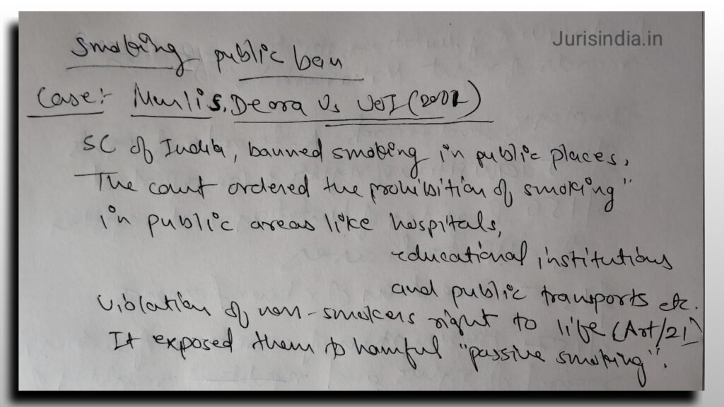 It also held that it is violation of non smokers right to life under article 21 of the Constitution of India, it is passive smoking to those who are not smokes.